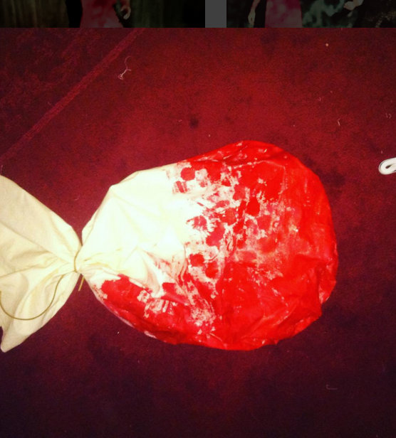 Snowmageddon at BeBe Theater Saturday afternoon. “The story was a monologue about a “champion boxer, who tells his story to an unseen reporter. As the actor shared his monologue with the audience he continued to release his frustrations on this stark white punching bag and by the end of the story the punching bag was riddled with splattered blood,” recalled Samantha Sax. “The actor made eye contact with me as if I was this unseen reporter. On one hand his focus made my anxious and uncomfortable but on the other hand the intensity in his eyes made me feel connected to his story.”